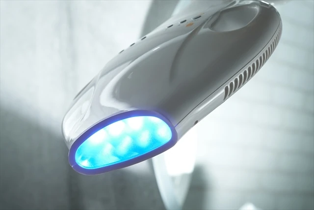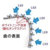ホワイトニング溶液を歯の表面に塗布して、青色LEDを照射します。